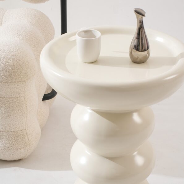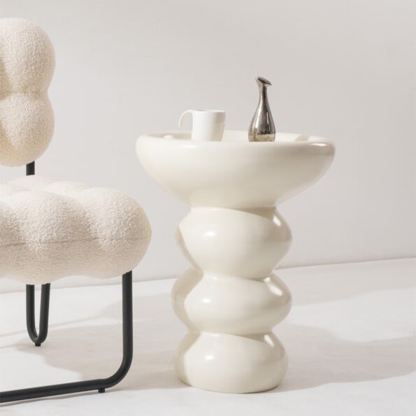 Premium Fiber-Reinforced Plastic: Crafted from advanced fiber-reinforced plastic, the Sloom Side Table offers remarkable strength-to-weight balance, ensuring it is sturdy yet easy to move when needed. This material resists warping, cracking, and chipping, maintaining its pristine condition even after years of use.